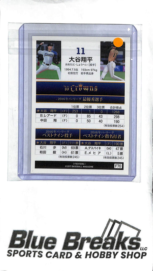 Shohei Ohtani F70 - 2017 BBM - '16 Crowns - Japanese Baseball - Fighters