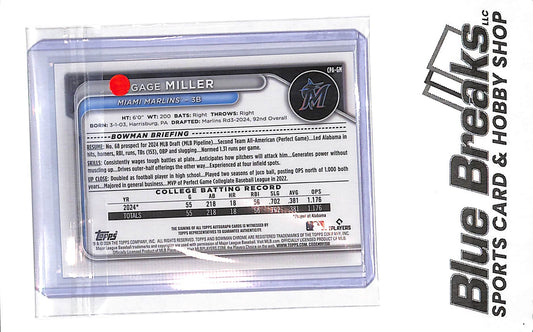 2024 Bowman Chrome 1st Bowman green refractor Gage Miller auto 79/99 #CPA-GM Marlins