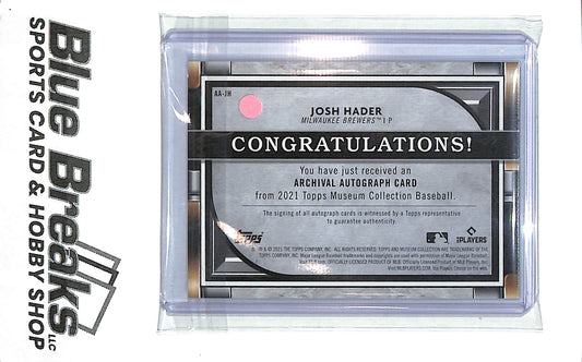 2021 Topps Museum Collection Archival auto Josh Hader 216/250 #AA-JK Brewers