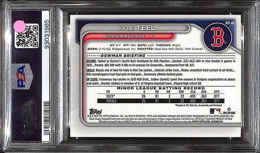 2024 Bowman - Kyle Teel - Baseball - Boston Red Sox - # BCP48 - Chrome Prospects - Lunar Glow - PSA 9