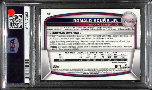 2023 Bowman Mega Box - Ronald Acuna Jr - Baseball - Atlanta Braves - # 92 - Chrome - PSA 10