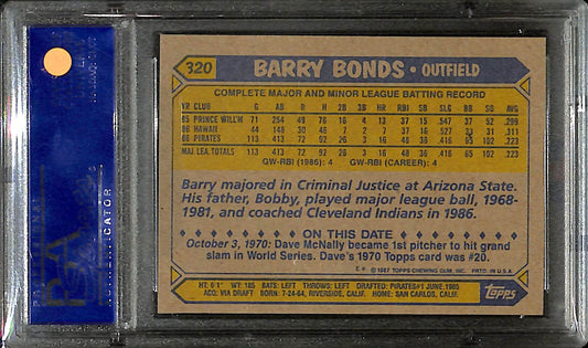 1987 Topps - Barry Bonds - Baseball - Pittsburgh Pirates - #320 - PSA 9
