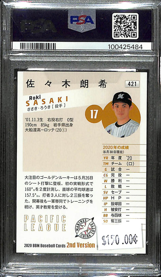 2020 BBM 2nd Version - Roki Sasaki - Baseball - Chiba Lotte Marines - Los Angeles Dodgers - #421 - Rookie - PSA 10