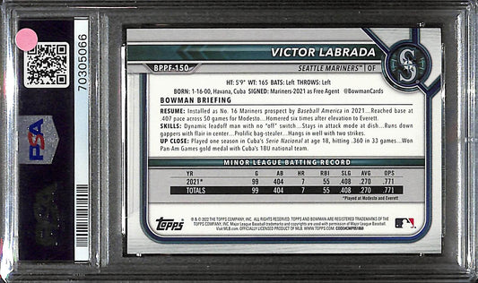 2022 Bowman 1st Edition - Victor Labrada - Seattle Mariners - Baseball - # BPPF150 - Blue Foil - 53/150 - PSA 10