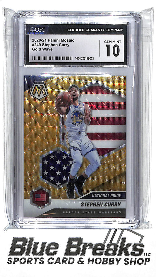 2020-21 Panini Mosaic Gold Wave Prizm National Pride Stephen Curry #249 CGC 10 Warriors