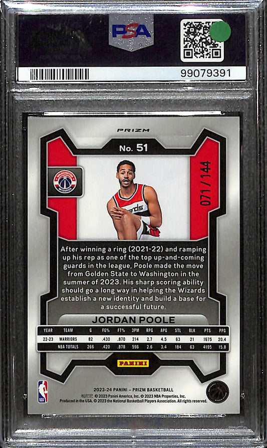 2023 Prizm - Jordan Poole - Basketball - Washington Wizards - # 51 - Blue Sparkle - 71/144 - PSA 9