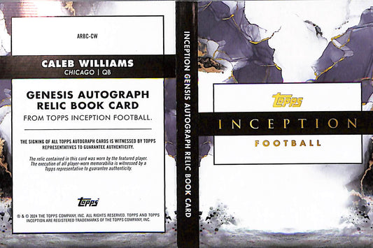 Caleb Williams 2024 Inception Genesis Autograph Relic Book ARBC-CW 05/10