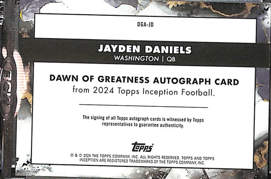Jayden Daniels 2024 Inception Dawn of Greatness Auto DGA-JD 01/10 Commanders