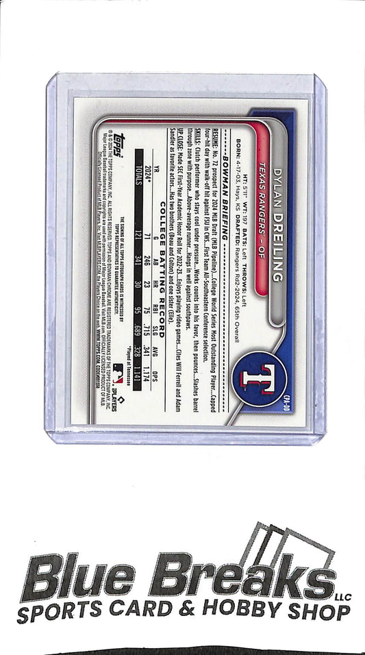 Dylan Dreiling 1st Bowman Auto CPA-DD Bubble Gum 2/5 Rangers