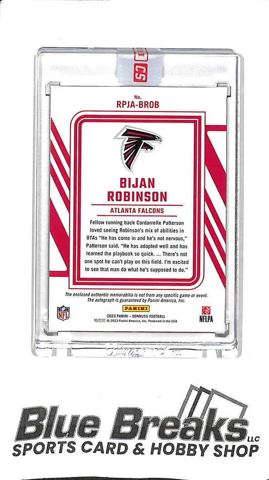 Bijan Robinson 2023 Donruss Patch Auto RPJA-BROB 09/49 Falcons
