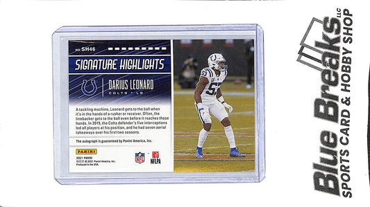 Darius Leonard 2021 Panini Signature Highlights SH46 Colts