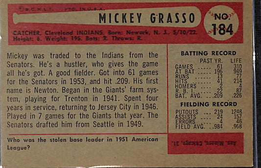 Mickey Grasso 1954 Bowman #184 Cleveland Indians
