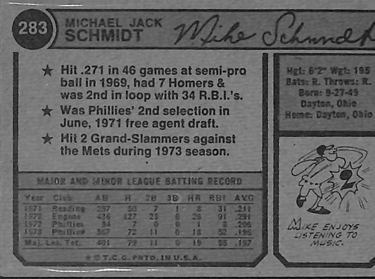 Mike Schmidt 1974 Topps #283 Phillies