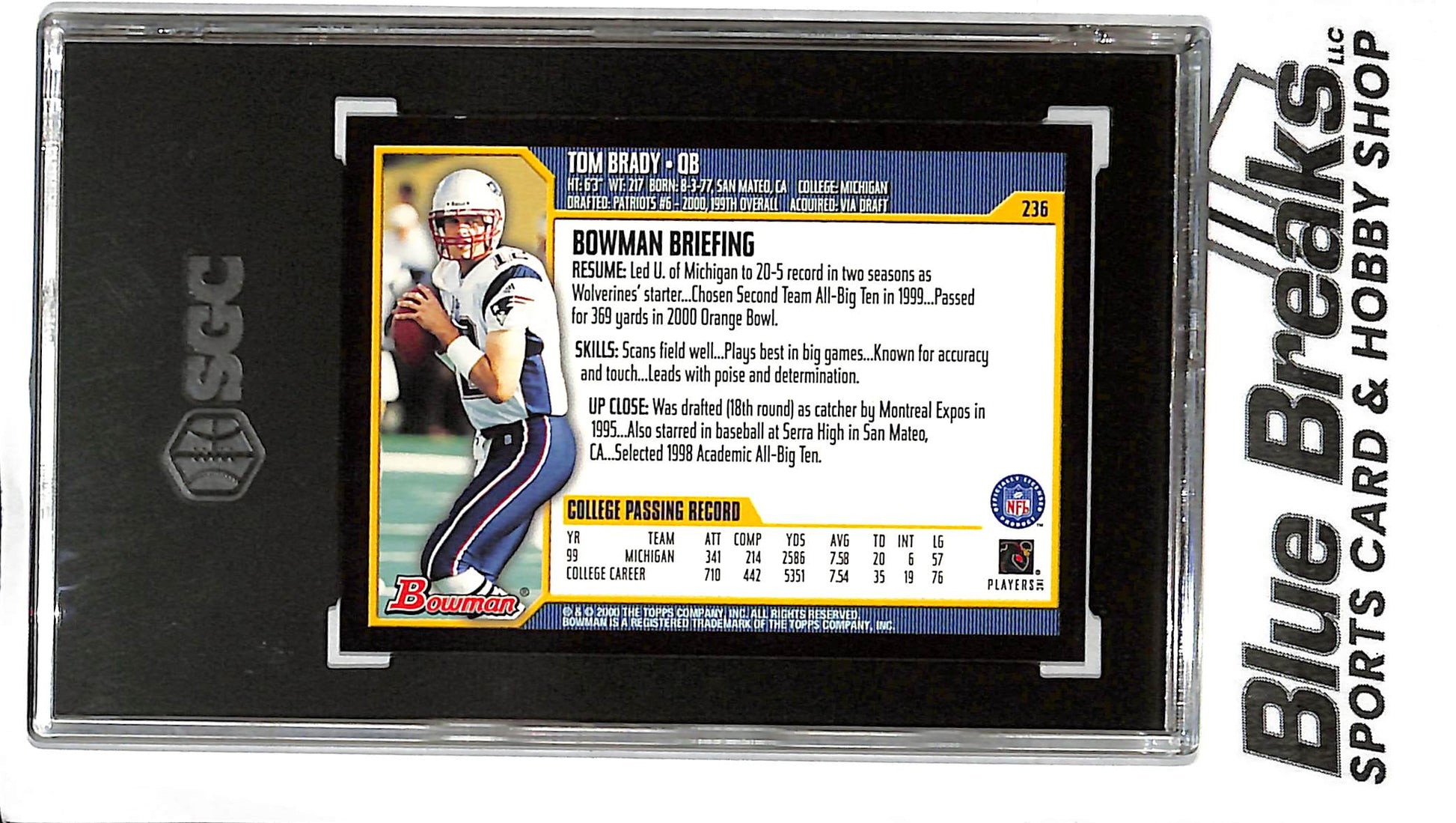 2000 Bowman - Tom Brady - RC - #236 -SGC 9 - football - Patriots