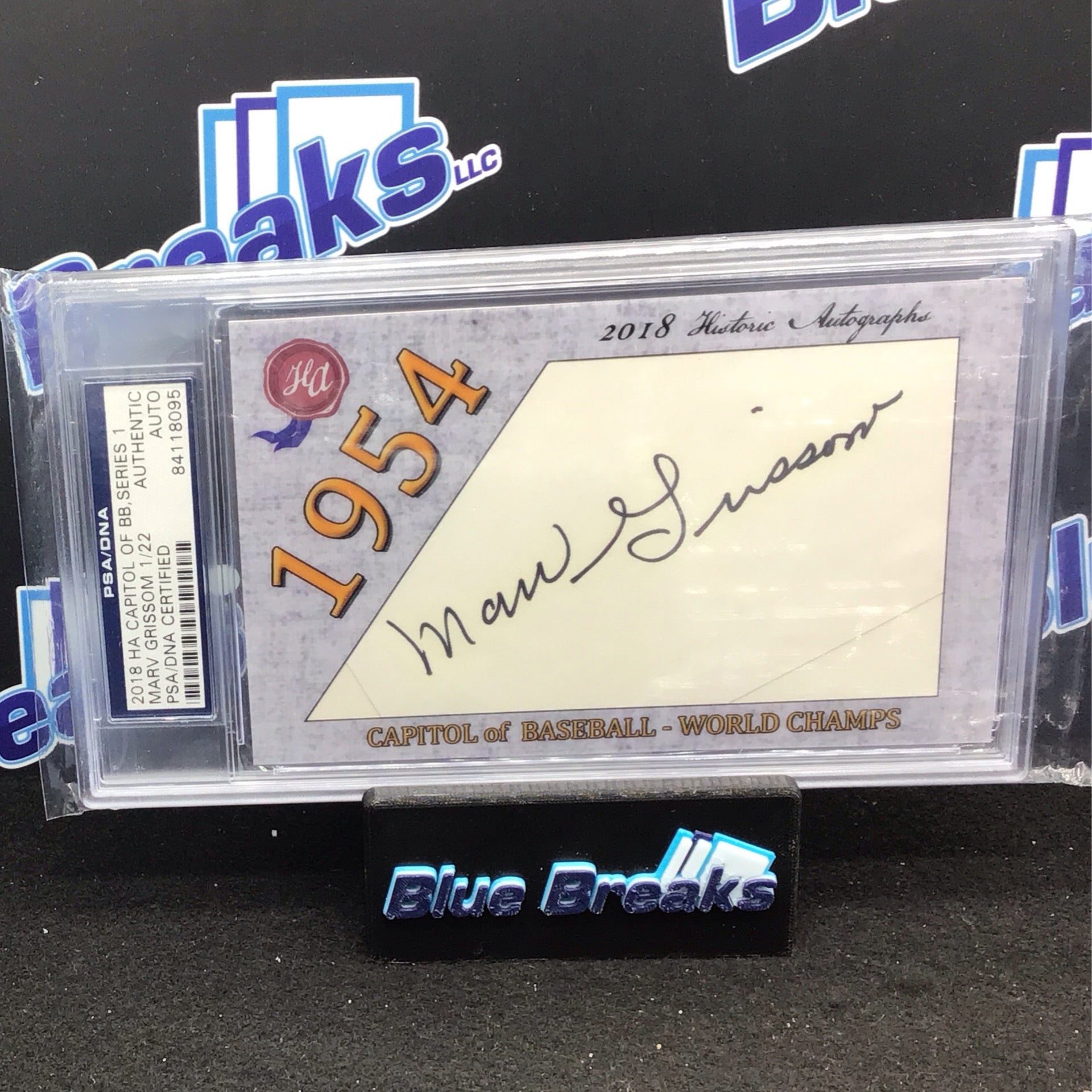 2018 HA Capitol of BB, Series 1 Marv Grissom 1/22 PSA/DNA Certified Authentic Auto